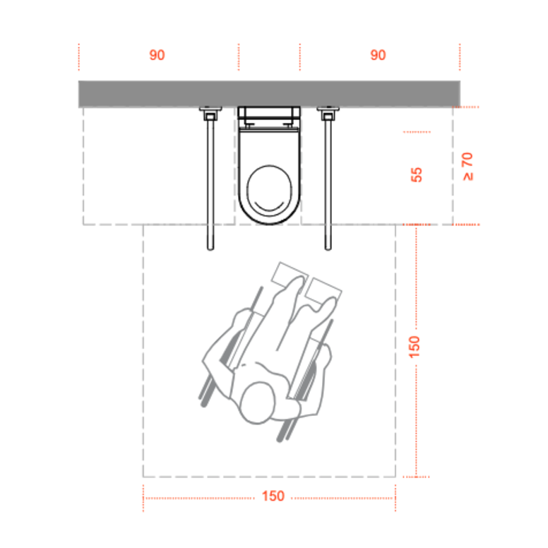 WC-Bereich: Darstellung nach DIN 18040-1