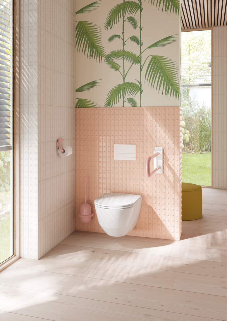 Bathroom requirements change over the years: Freedom of movement, clear structures and safe and secure supports become more important. The Barbie™ × HEWI collection shows that the demand for good design does not depend on age. The 477/801 range, a design icon in accessibility building for decades, combines its clear style with Barbie’s unmistakable world of colour.