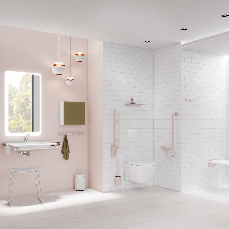 HEWI is your specialist for barrier-free sanitary products and combines outstanding design with functionality. High-quality materials, intelligent details and a well thought-out design characterise HEWI’s sanitary systems and ranges. Universal design is an integral part of this – for comfort, safety and an aesthetic finish.