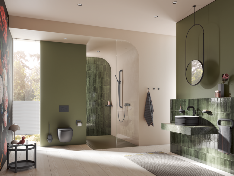 HEWI's new Re-seat family consists of three stools and two bathroom chairs and is made from post-industrial recyclate, some of which comes from HEWI itself and some sourced from a regionally based producer. In the natural colours forest green and dark granite grey, they offer an exciting and vivid look and feel.