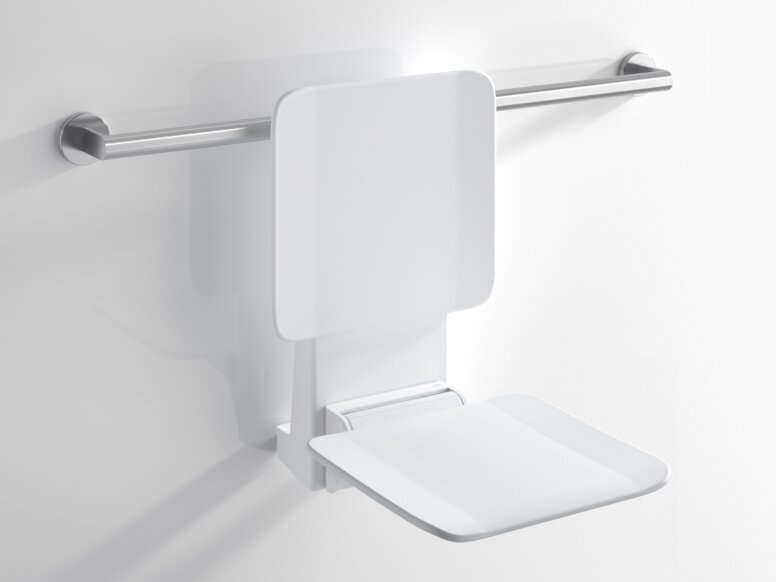 Permanently installed shower seats have a folding seat. If the shower seat is not required, more space in the shower can be created with a single movement.