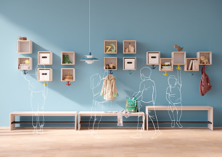 Een garderobe voor een kinderdagverblijf vormgeven- de belangrijkste planningstips